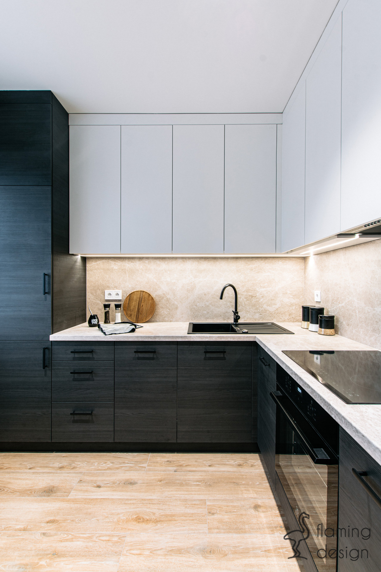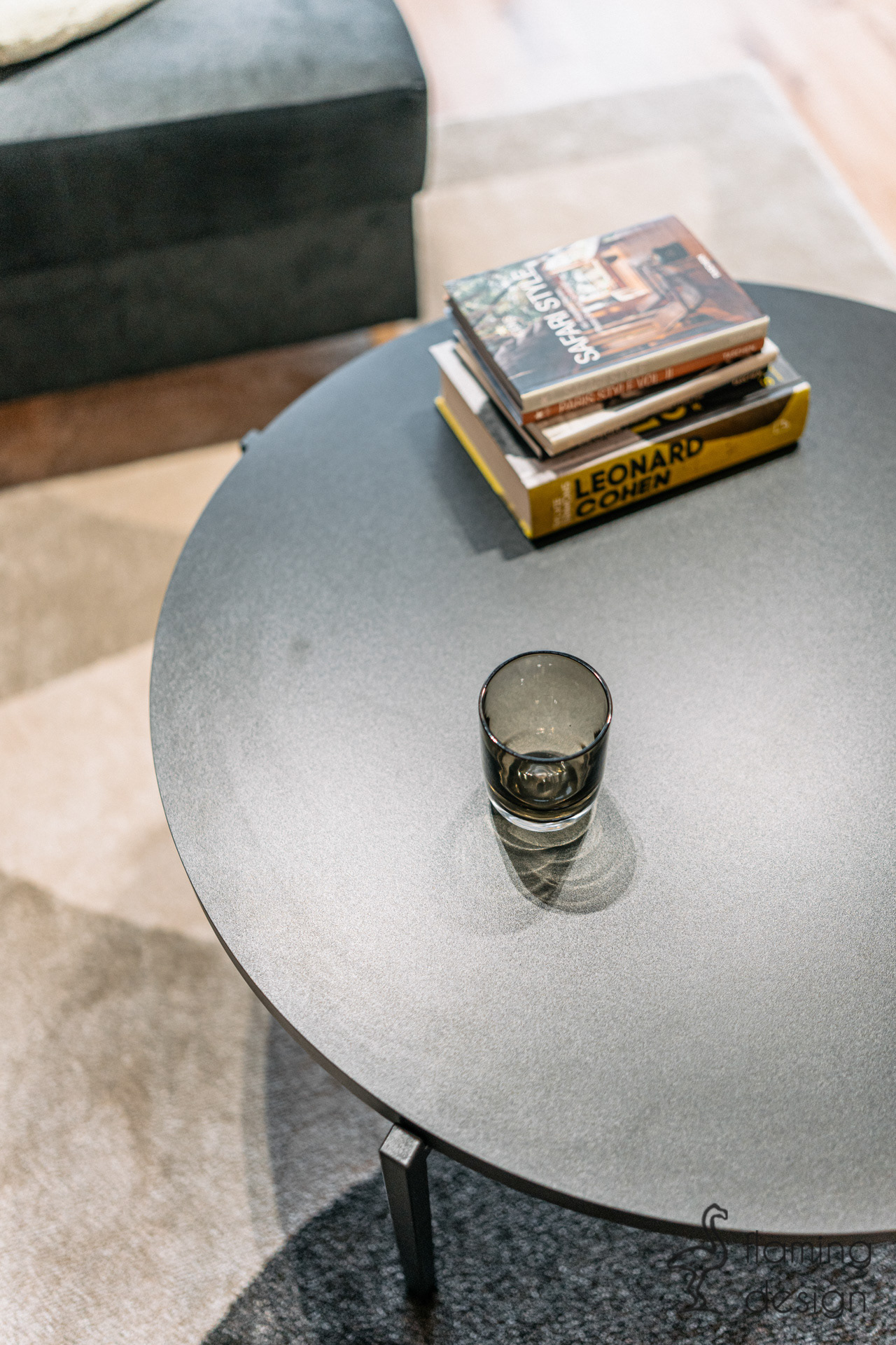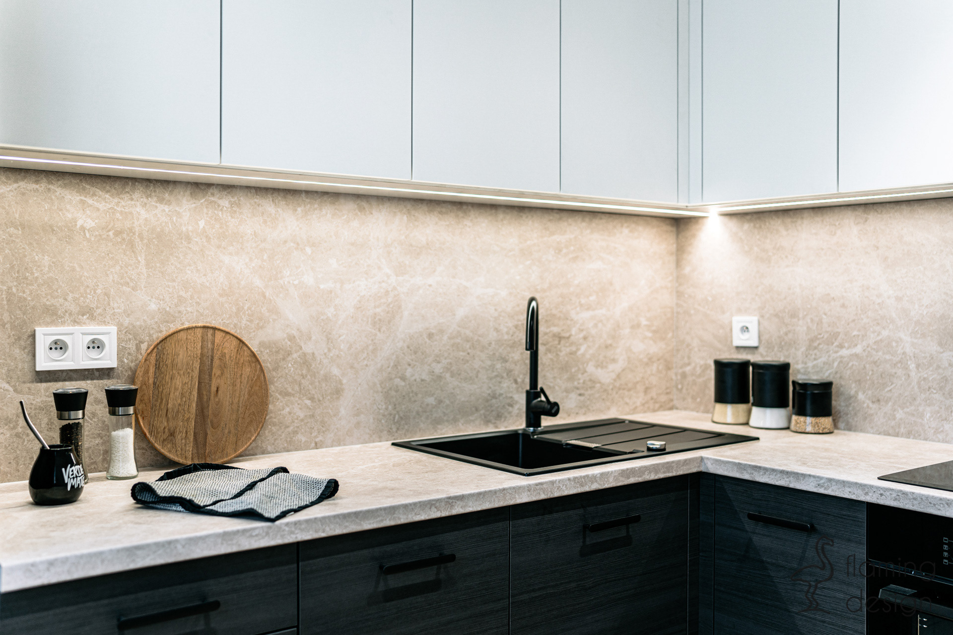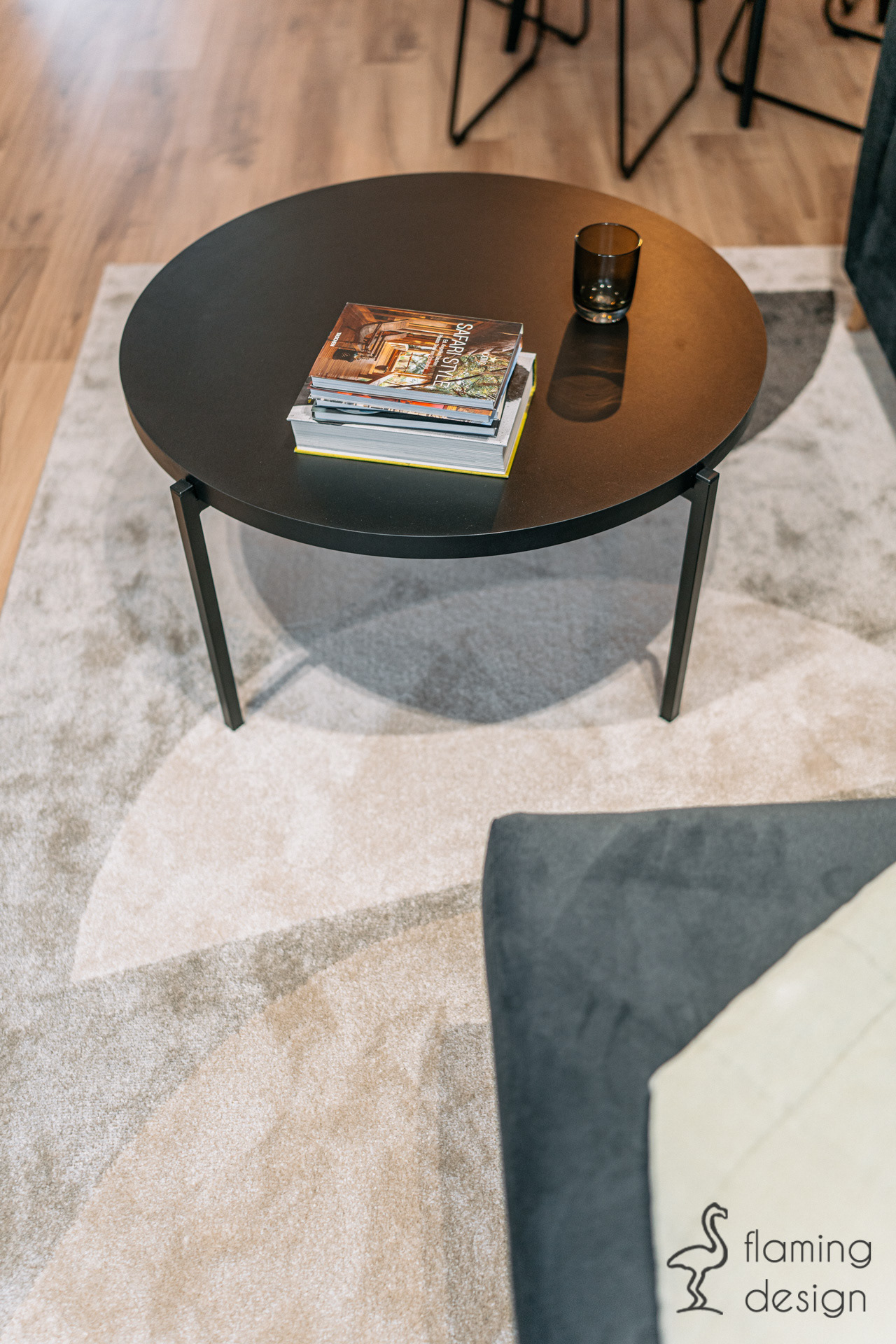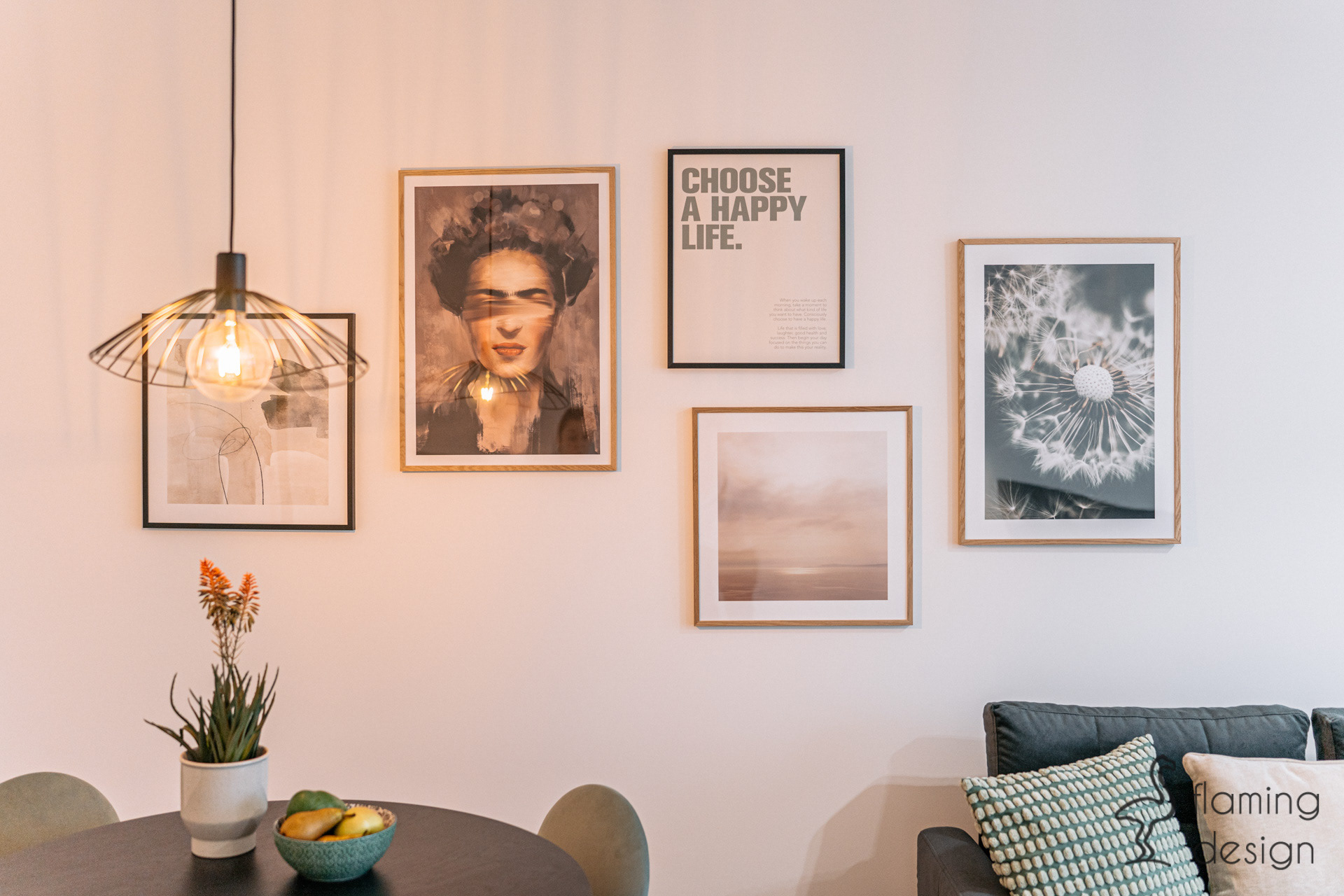 Projekt mieszkania na wynajem. Mieszkanie wymagało generalnego remontu, zachowano taki sam układ funkcjonalny pomieszczeń. W przedpokoju zaprojektowano dużą szafę z siedziskiem i wieszakami. W salonie znalazło się miejsce na rozkładaną sofę, okrągły stół z krzesłami oraz szafkę rtv. Dominują tu kolory takie jak biel, beż, jasny brąz, szałwiowa i butelkowa zieleń oraz czerń. Kuchnia z nowymi szafkami i czarnym okrągłym stolikiem jest bardziej funkcjonalna niż poprzednio. W łazience zaprojektowano szaro-beżowe płytki o wzorze lastryko, czarne dodatki takie jak baterie, kabina prysznicowa oraz zabudowę wnęki w kolorze podłogi w pozostałych pomieszczeniach mieszczącą pralkę i półki. Sypialnia z częścią ściany w kolorze zielonym nawiązuje do kolorów w salonie.