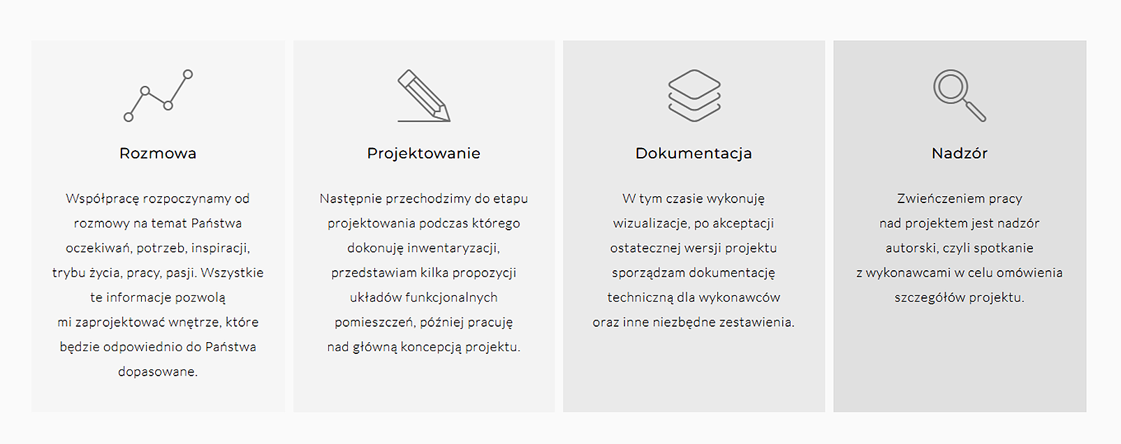 - wizualizacje przestrzenne 3D lub moodboard projektowanych pomieszczeń